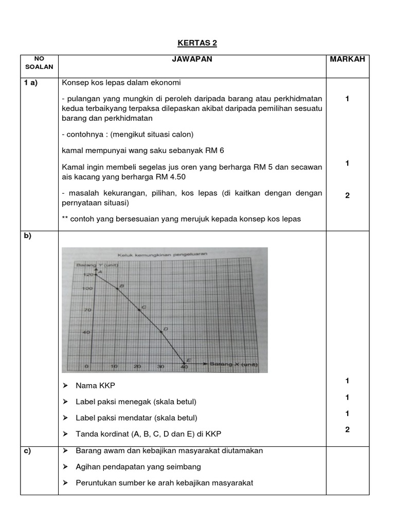 Skema Jawapan Kertas 2 Ekonomi