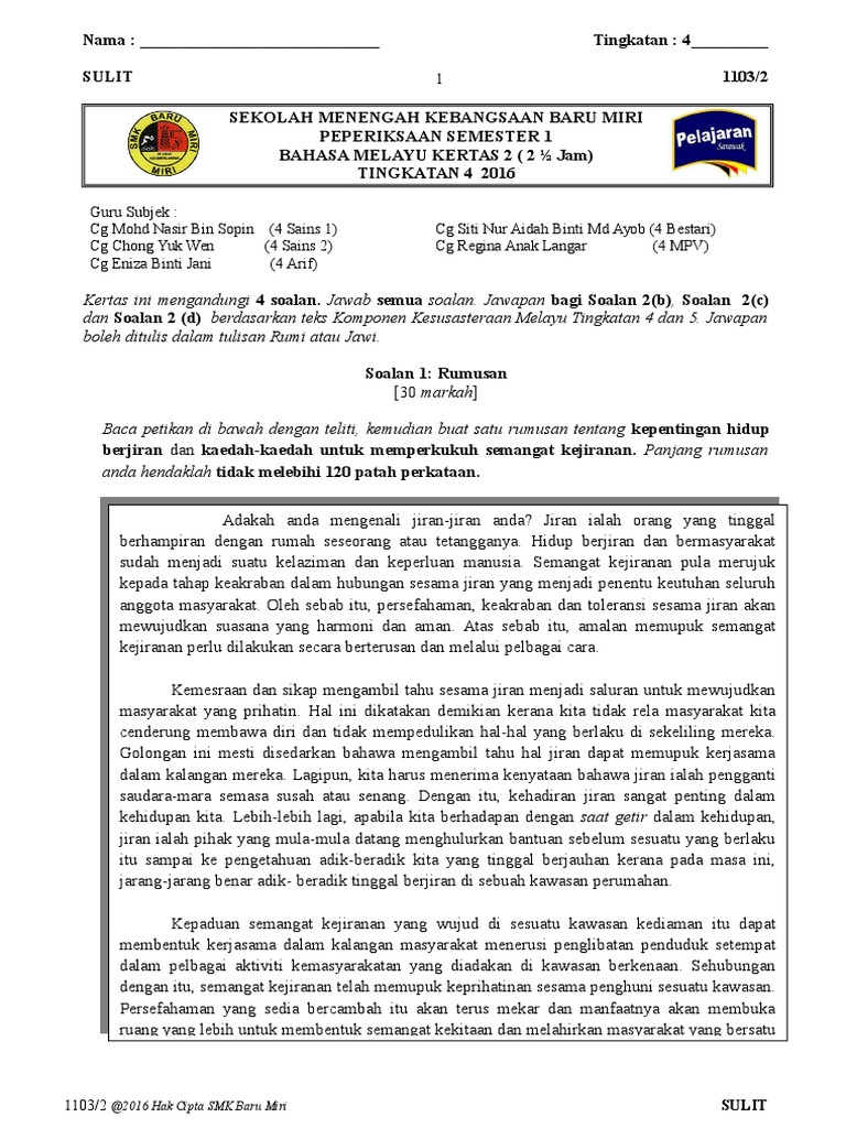 Bahasa Malaysia Tingkatan 4 Kertas 2