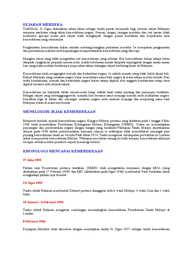 Sejarah Tingkatan 3 Kemerdekaan Negara 31 Ogos 1956