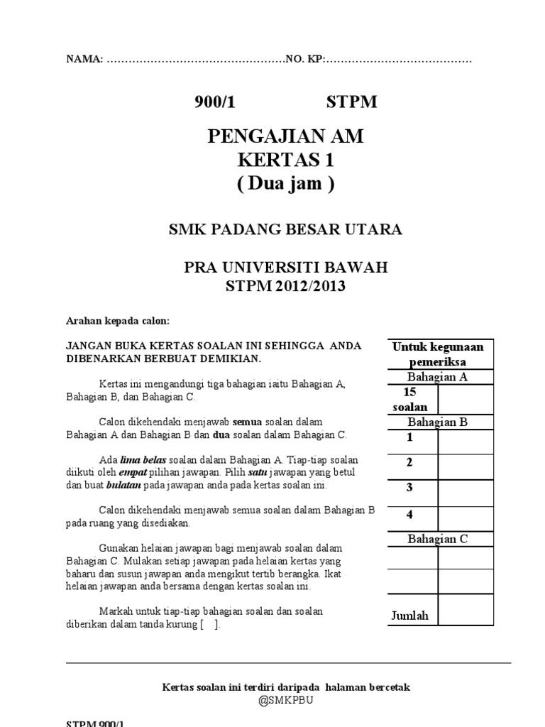 Soalan Peperiksaan Pengajian Am Penggal 1 2012