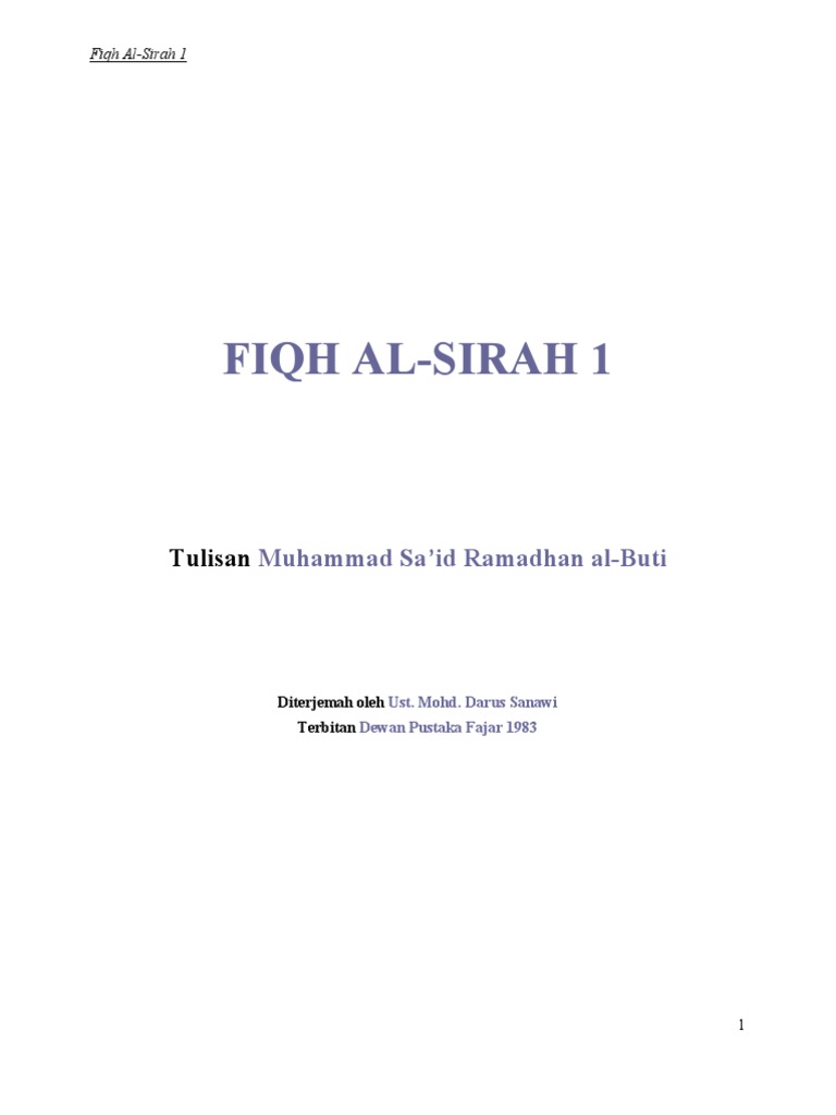 Fiqh Al Sirah 1 Said Ramadan Al Buti