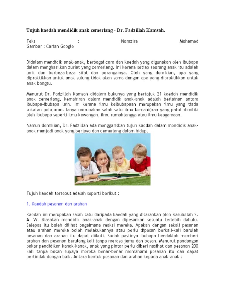 Tujuh Kaedah Mendidik Anak Cemerlang