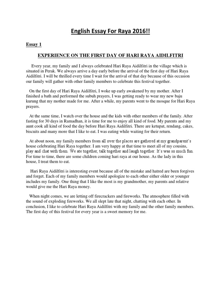 English Essay Hari Raya Aidilfitri