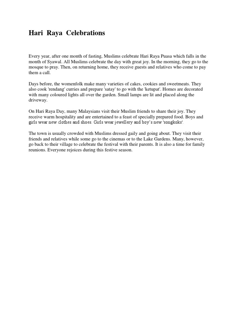 Hari Raya Celebration Essay