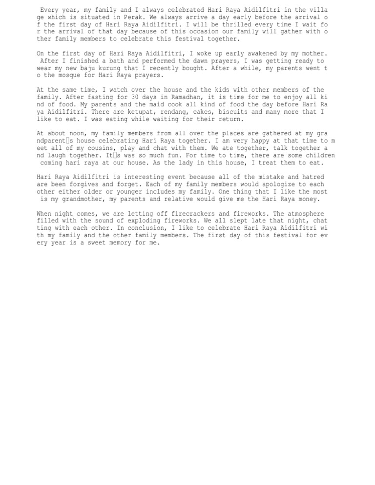 Essay My Hari Raya Celebration