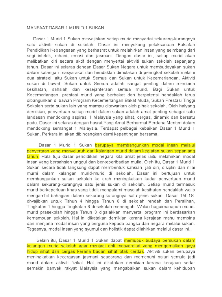 Doc Faedah Faedah Pelaksanaan Dasar 1murid 1sukan Mak Wen Hui Academia Edu