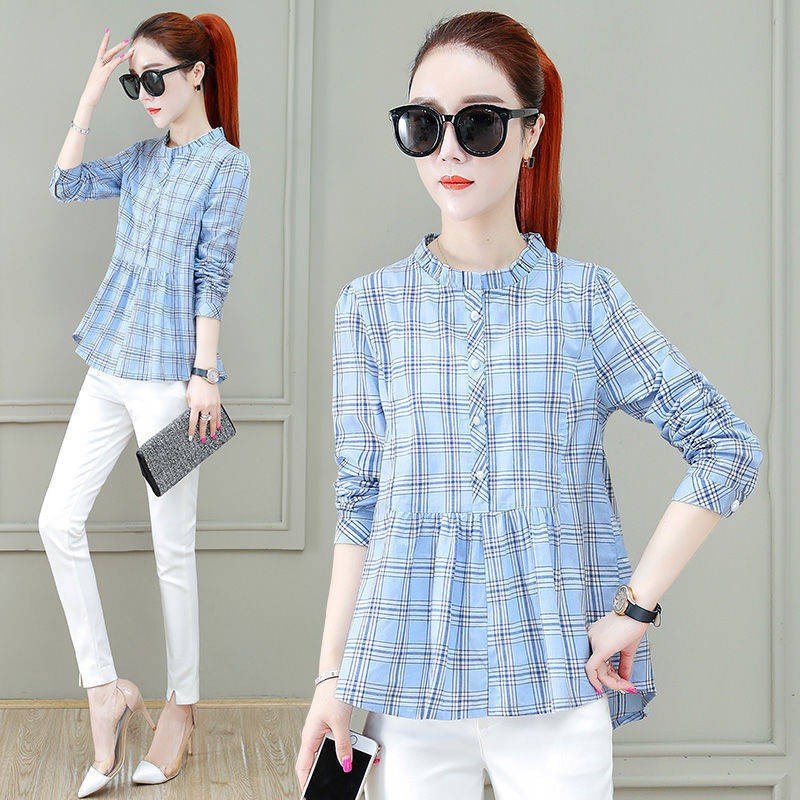 Baju Lengan Panjang Perempuan Baju Kemeja Kotak Kotak Wanita Musim Luruh 2020 Lengan Panjang Plus Ukuran Pinggang Pelangsing Pinggang Perut Kemeja Leher Bulat Liar Sederhana Shopee Malaysia