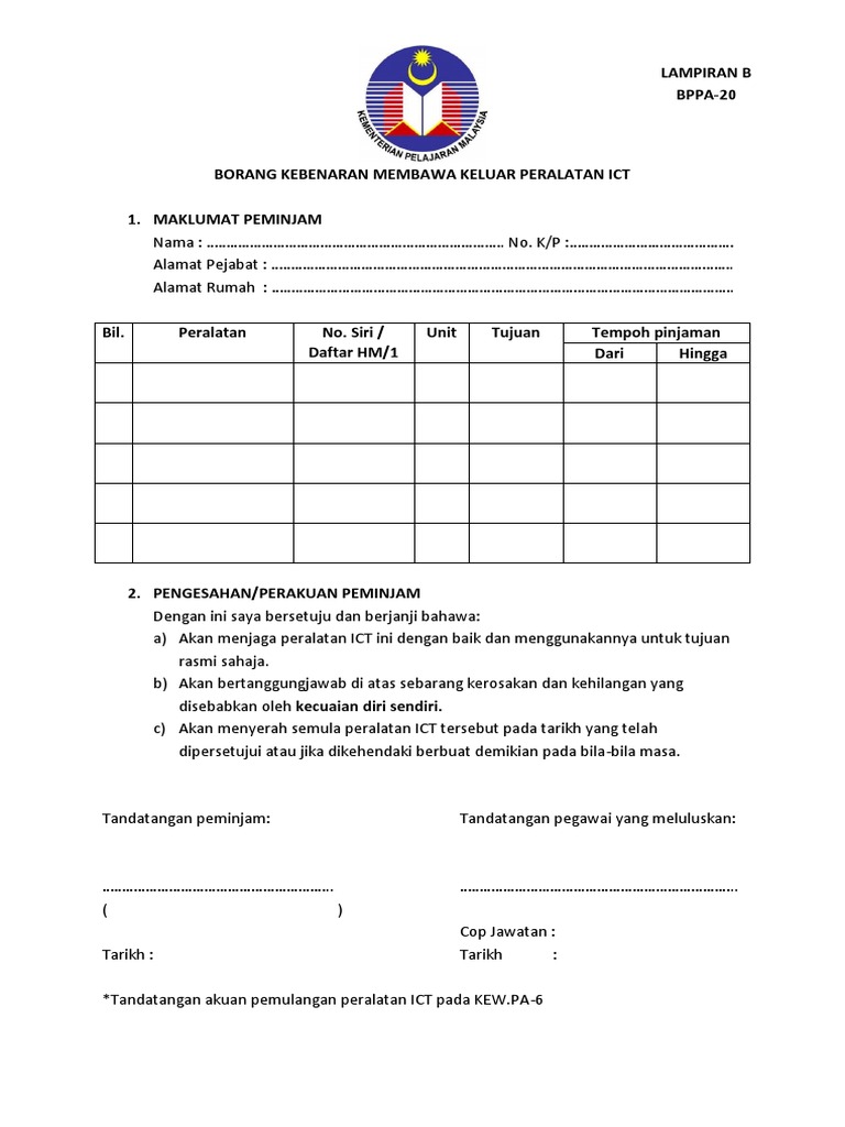 Borang Kebenaran Membawa Keluar Peralatan Ict Diunggah Oleh Putera Firdaus