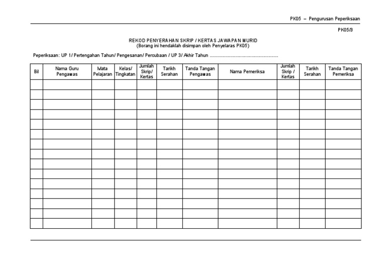 Contoh Borang Pk05 3 Penyerahan Skrip Jawapan Murid