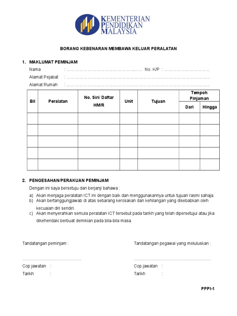 Doc Borang Kebenaran Membawa Keluar Peralatan Ict Faidil Adzman Academia Edu