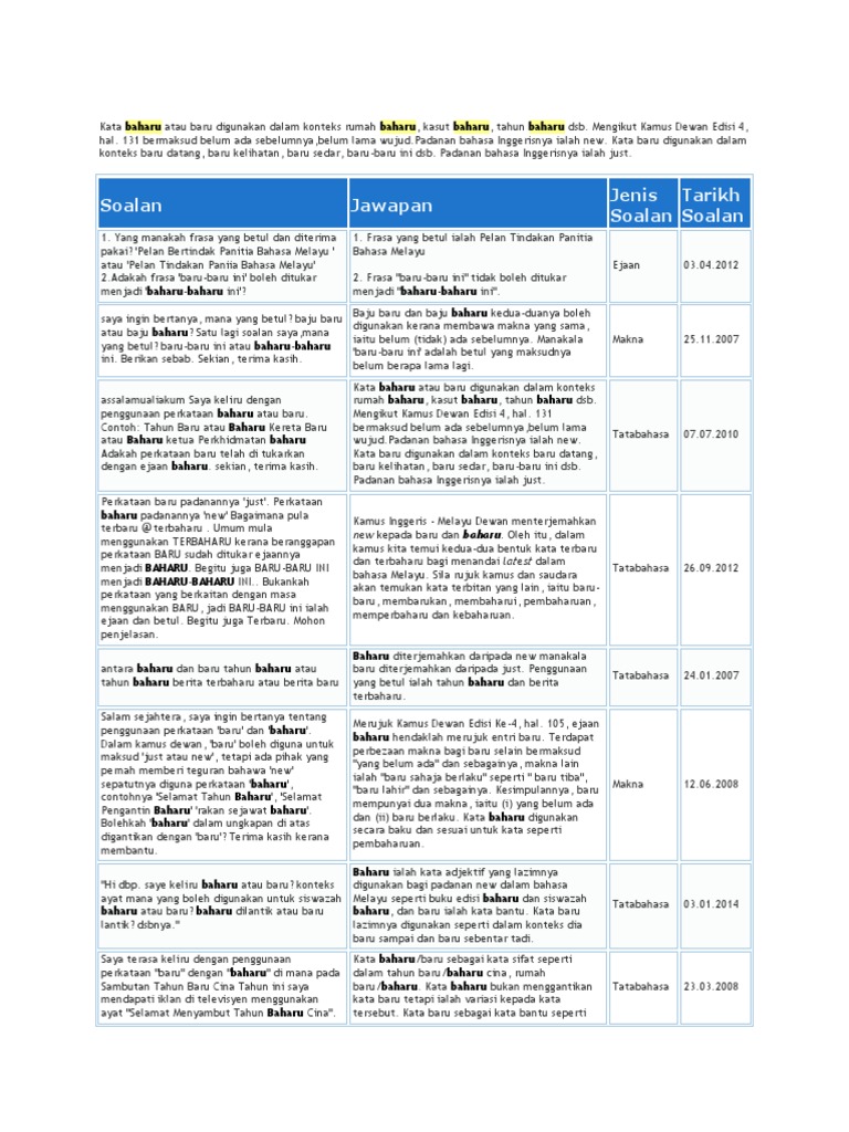 Penggunaan Perkataan Baru Atau Baharu Cikgu Ayu Dot My