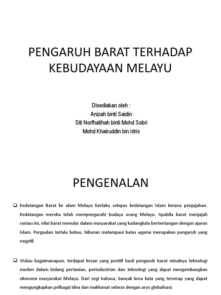 Pengaruh Barat Terhadap Kebudayaan Melayu