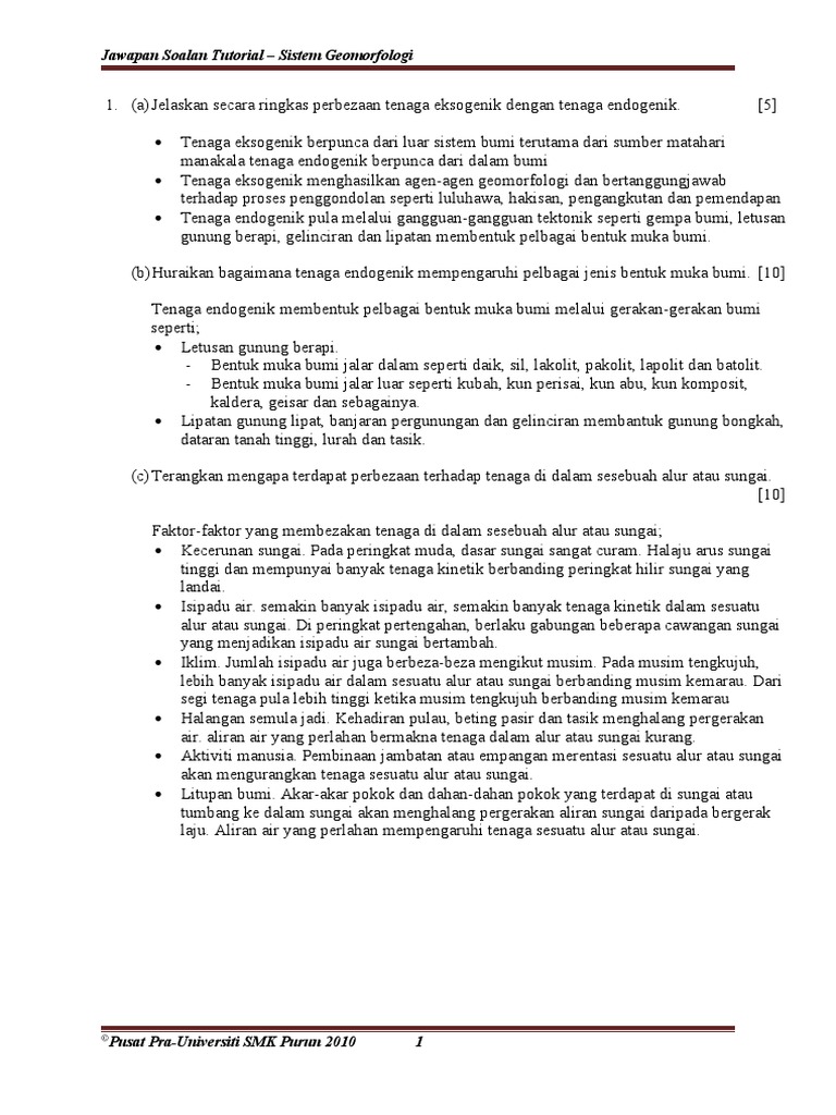 Soalan Tutorial Sistem Geomorfologi Jawapan