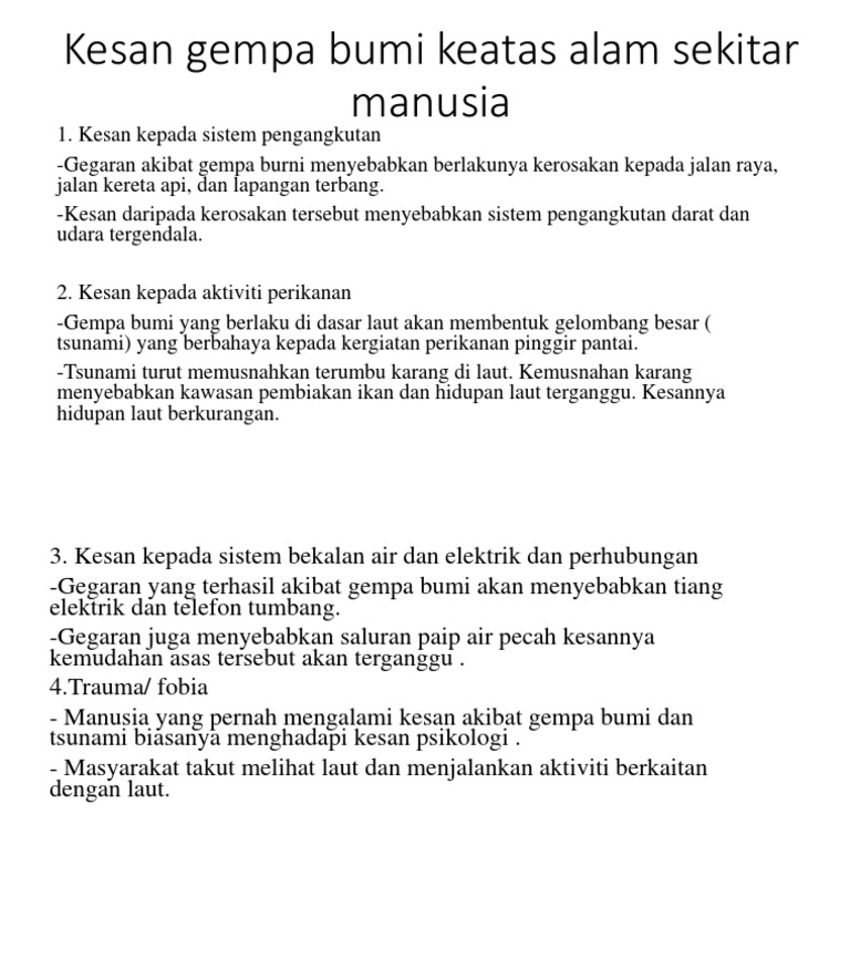 Jawapan Bagi Soalan Apakah Kesan Kejadian Gempa Bumi