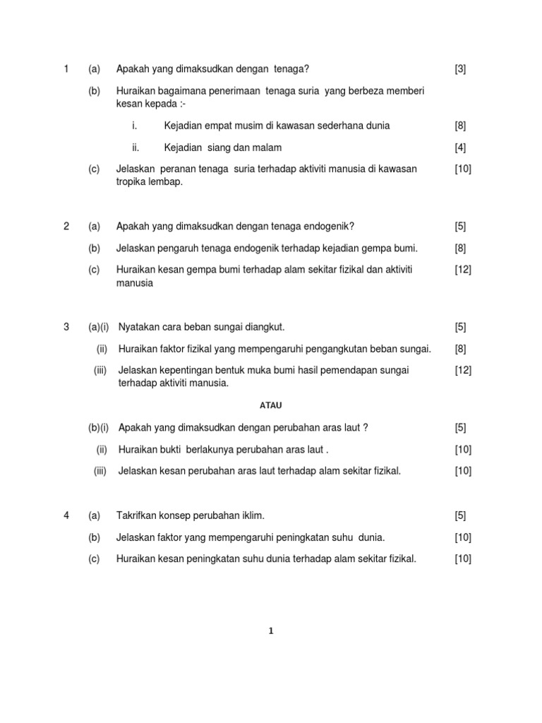 Percubaan Stpm 2010 Kedah Geografi Fizikal Soalan