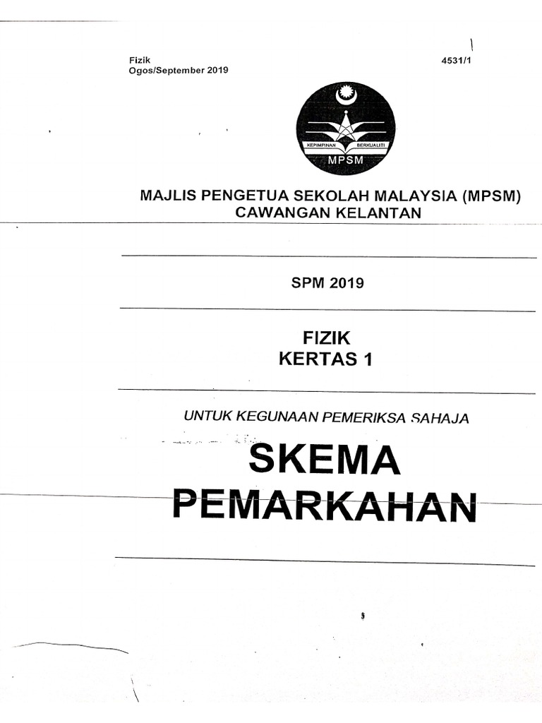 Skema Jawapan Mpsm Kelantan 2019 Fizik