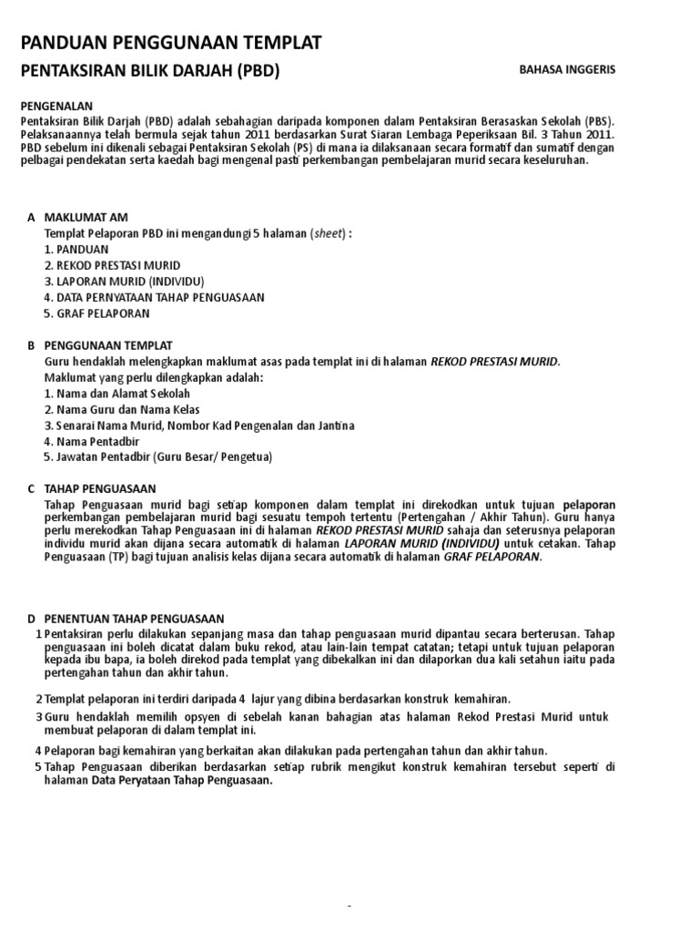 Buku Panduan Pelaksanaan Pentaksiran Bilik Darjah Pbd