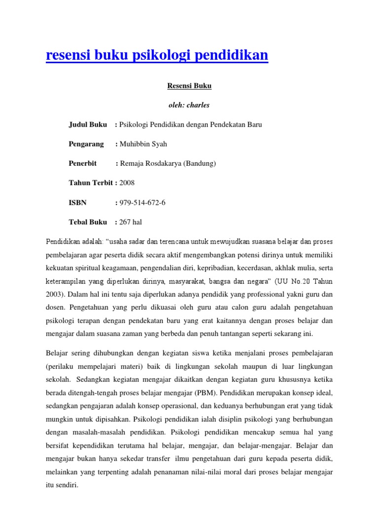 Doc Review Buku Psikologi Pendidikan Docx Lola Puspita Academia Edu