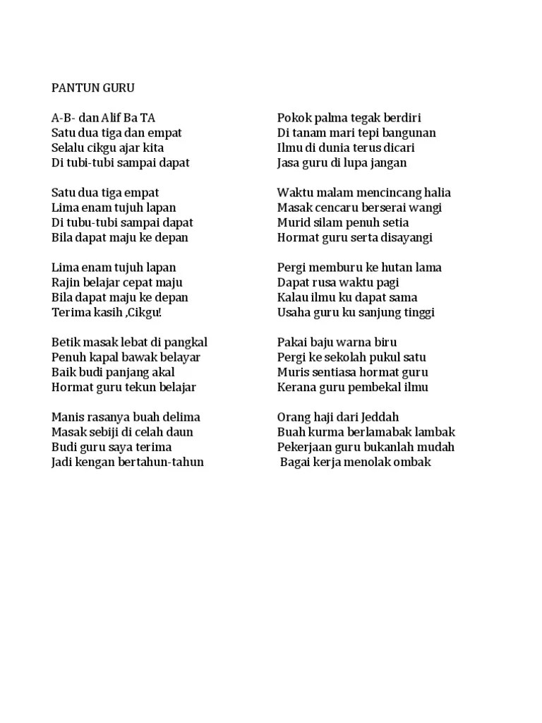Bm Tahap 1 Sajak Dan Pantun Untukmu Guru