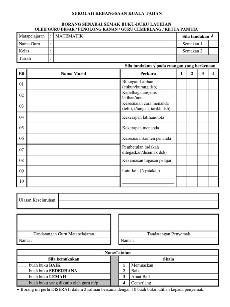 Rekod Penyemakan Buku Latihan Murid Pdf Document