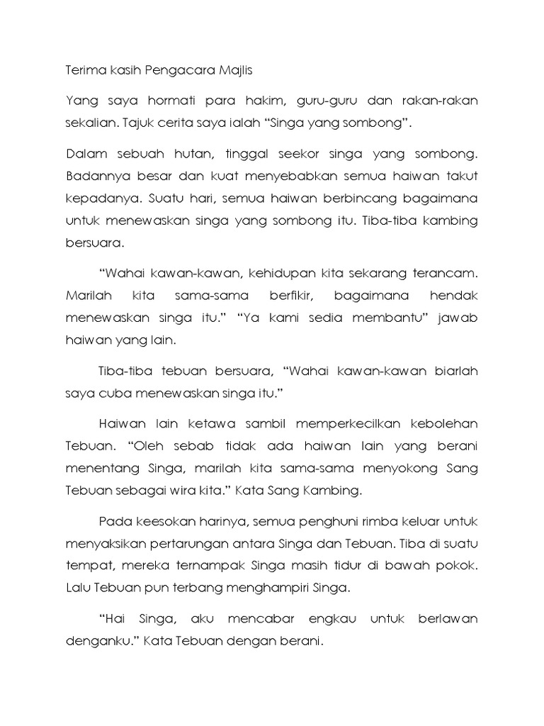 Teks Cerita Tahap 1 Singa Yang Sombong
