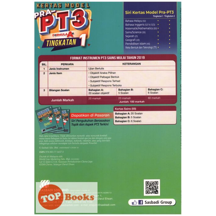 Topbooks Sasbadi Kertas Model Pra Pt3 Formula A Sains Tingkatan 1 2020 Shopee Singapore