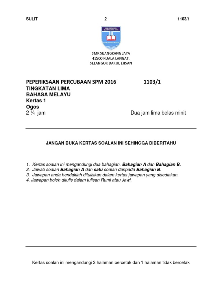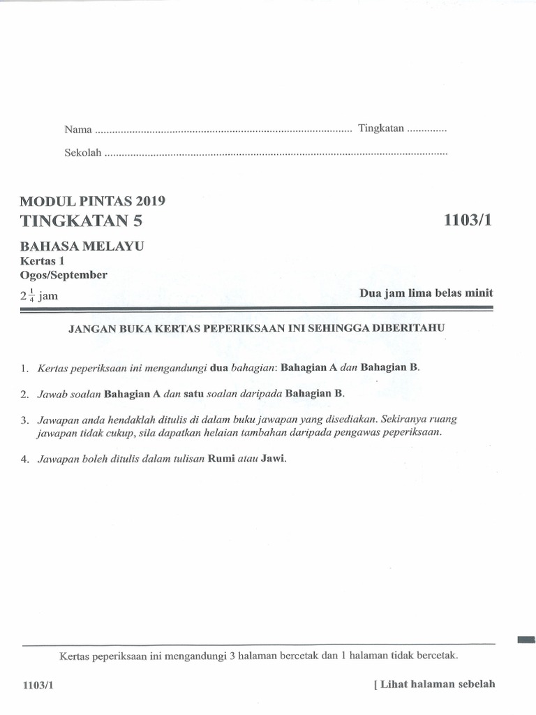 Laman Bahasa Melayu Spm Soalan Bahasa Melayu Kertas 1 1103 1 Spm 2018