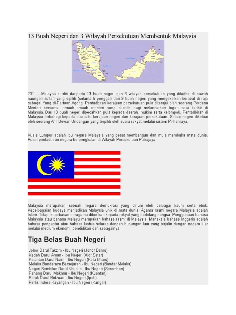 Berapakah Jumlah Negeri Di Malaysia Termasuk 3 Buah Wilayah Persekutuan