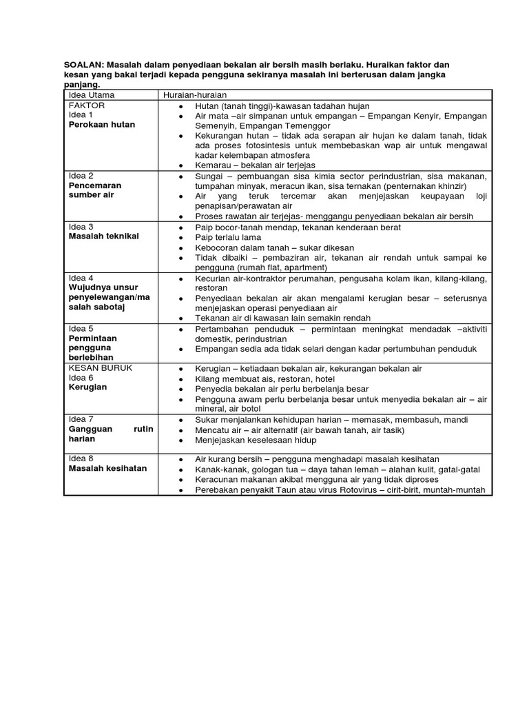 Idea A Faktor Berlaku Gangguan Bekalan Air Bersih Fakta 1 Pencemaran Air Sumber Course Hero