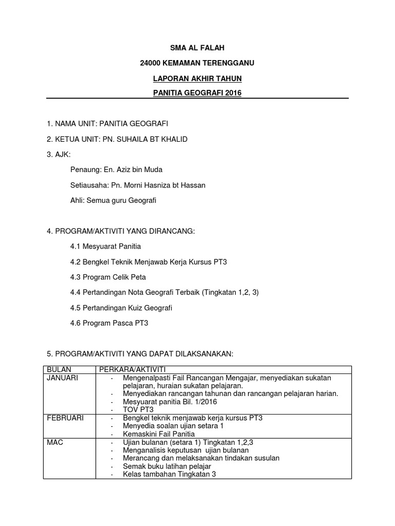 Laporan Akhir Tahun Panitia Geo 16