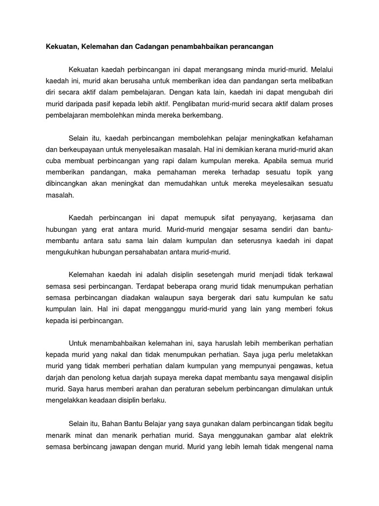 Kekuatan Kelemahan Dan Cadangan Penambahbaikan Perancangan