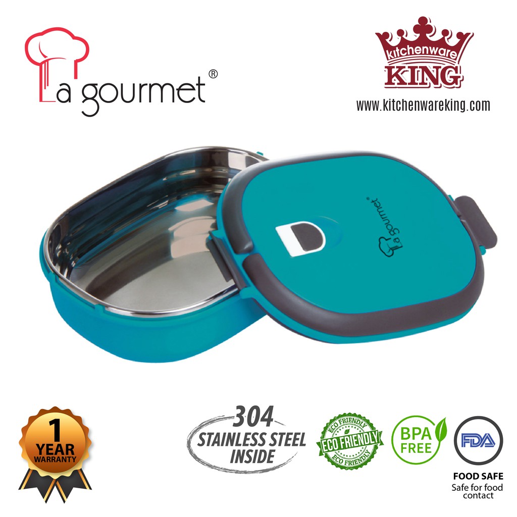 La Gourmet 3r Pack To Go Rectangular Stainless Steel Lunch Box Turquoise 0 9l Shopee Singapore