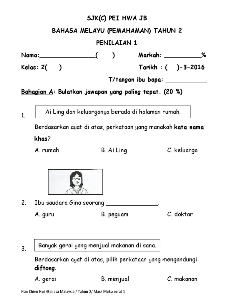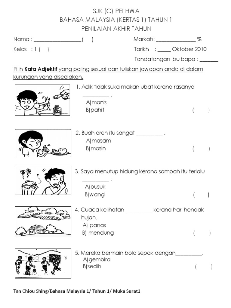 Sjk C Pei Hwa Bahasa Malaysia Kertas 1 Tahun 1 Penilaian Akhir Tahun