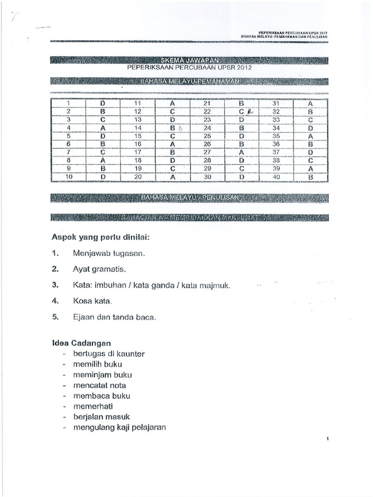 Skema Jawapan Bm Kertas 2 Fendy Com My Jawapan Skema Peperiksaan Percubaan Pmr Tahun 2012 Skema Bahasa Melayu Kertas 2 5 1 2 Baca Karangan Itu Sekali Lagi Pdf Document