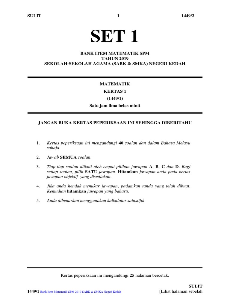 Matematik K1 Set 1 Sabk Smka Kedah 2019 Pdf